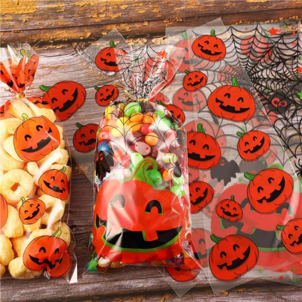Halloween Treat Bags Clear Cellophane Pumpkin Candy Bags with Twist Ties for Halloween Supplies